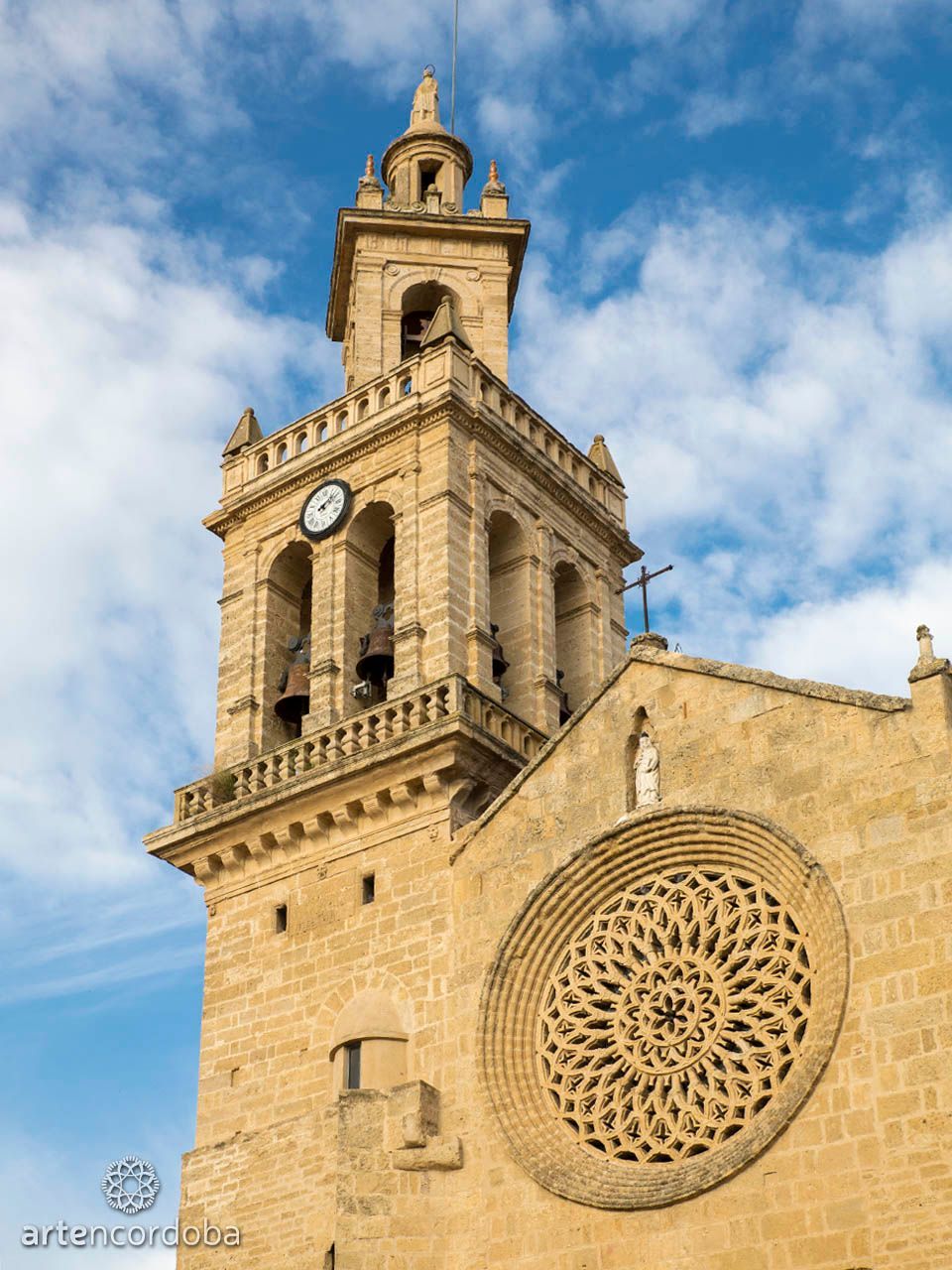 En el exterior, el templo muestra un pórtico de tres vanos del siglo XIV y un gran rosetón gótico-mudéjar que ornamenta el hastial. El antiguo alminar, cuyos restos son visibles desde el interior de la Iglesia, fue transformado en torre renacentista compuesta por tres cuerpos y coronada con una imagen de San Lorenzo Mártir por Hernán Ruiz II en 1555.